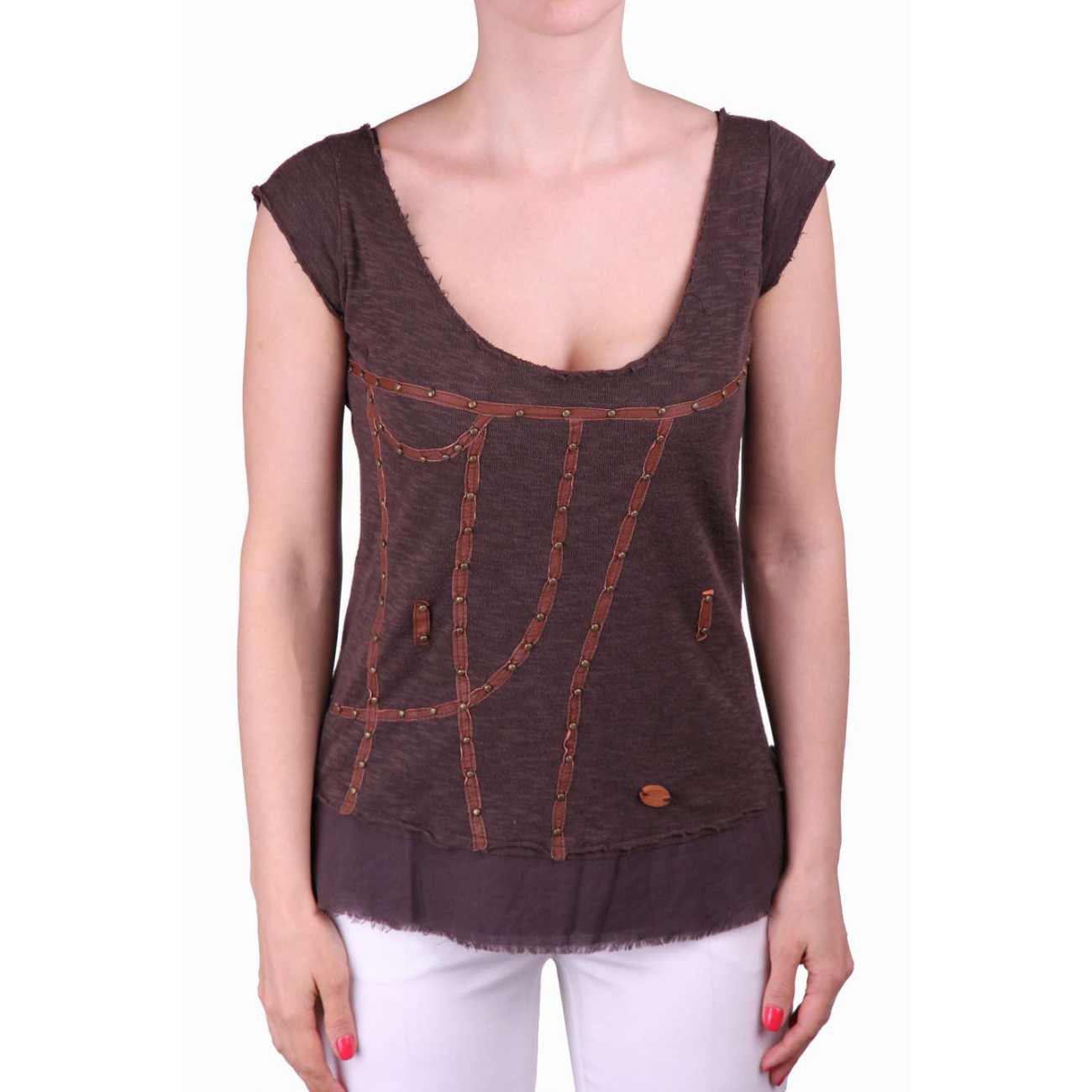 Жилет из ткани "хлопок с начесом" и кожаными лентами