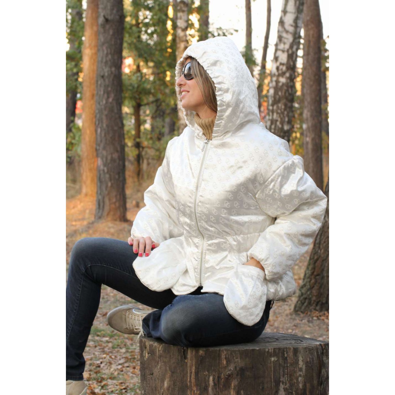 Куртка из итальянской атласной ткани с брендовым логотипом (печать). Модель со спущеным плечом и объемным рукавом. Заниженые накладные карманы . Объемный капюшон мягко переходит в воротник. Наполнитель - синтепух. Шелковый подклад с рисунком "леопард".