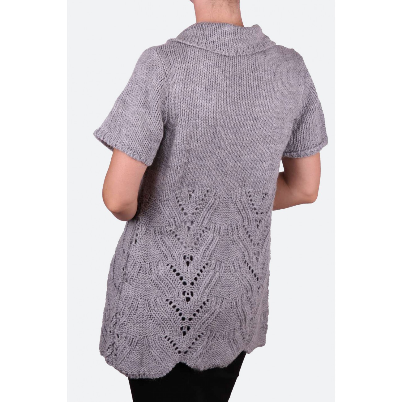 Кардиган светло серый из мохера "ажурная вязка"