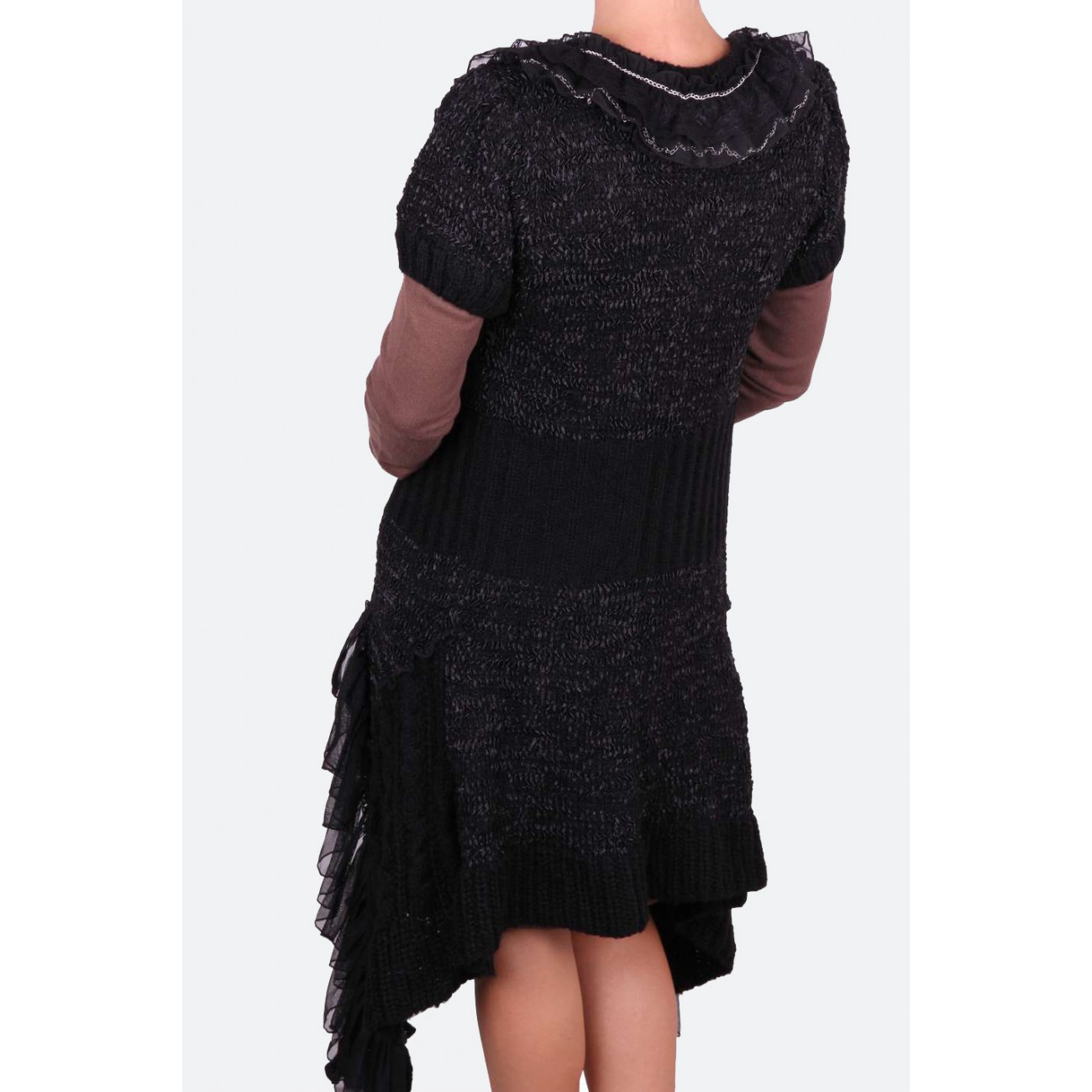 Кардиган черный с ассиметричным подолом и тройным воланом